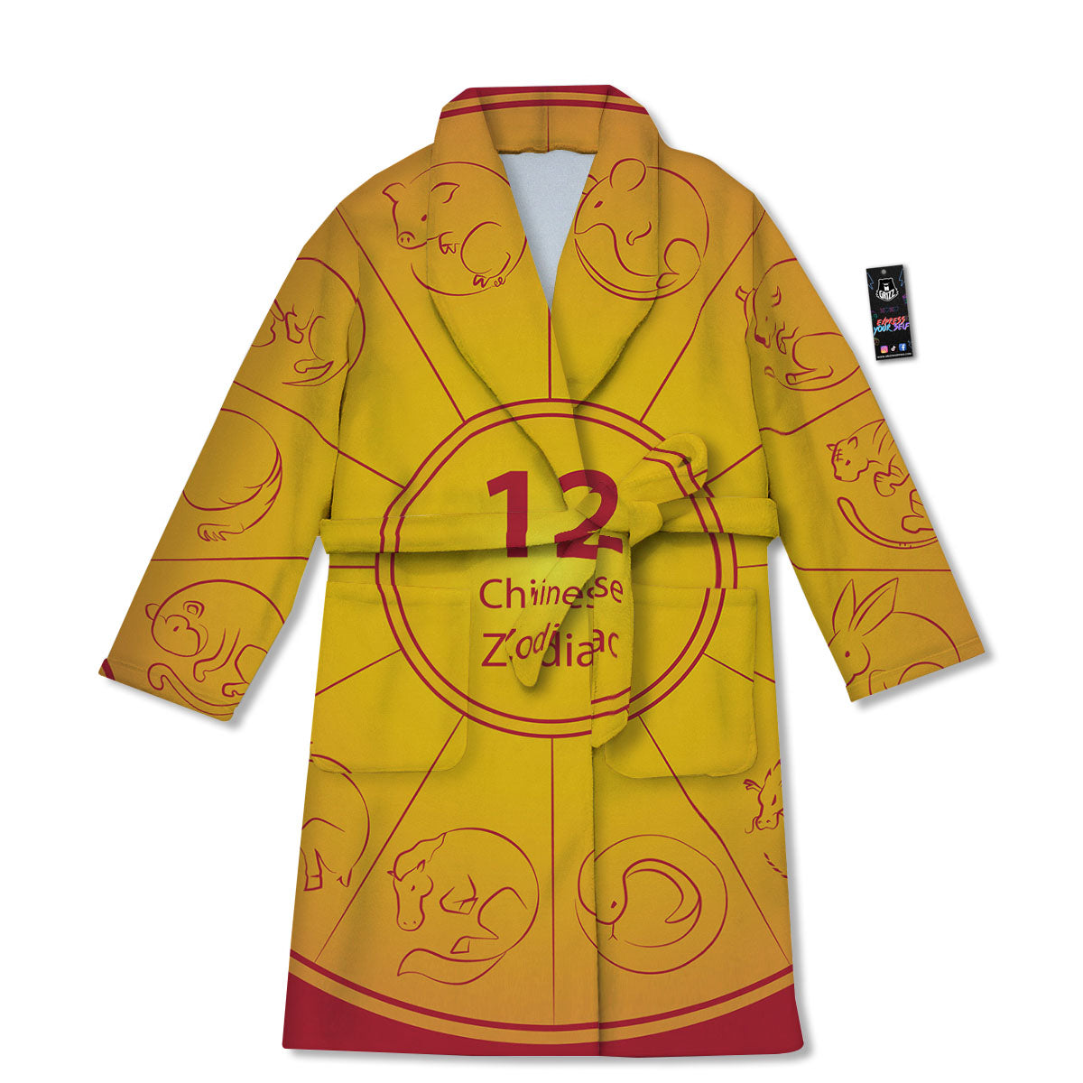 Chinese Zodiac Yellow And Red Print Bathrobe