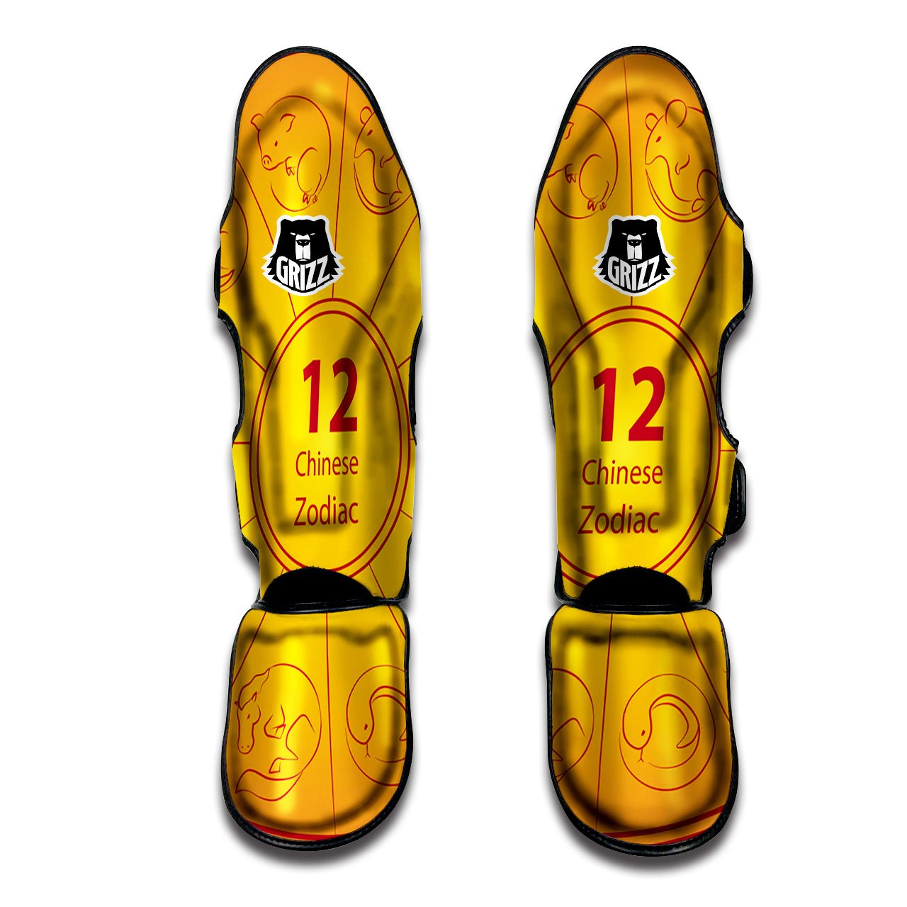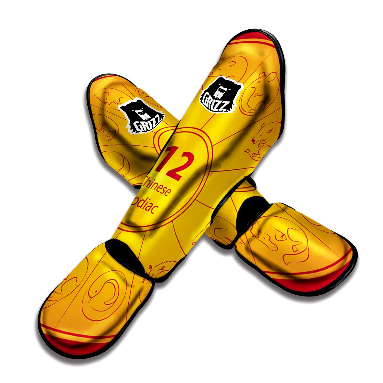 Looking for a unique shin guards? Check out our Chinese Zodiac Yellow And Red Print Muay Thai Shin Guards at Grizzshopping. Our shin guards are handcrafted to the highest quality standards that custom made for you