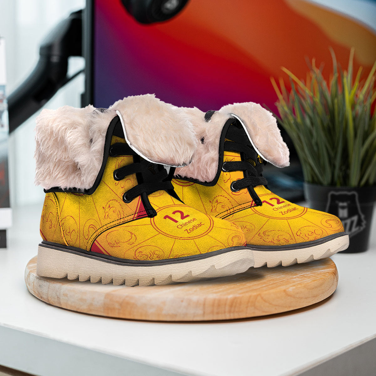 Chinese Zodiac Yellow And Red Print Snow Boots