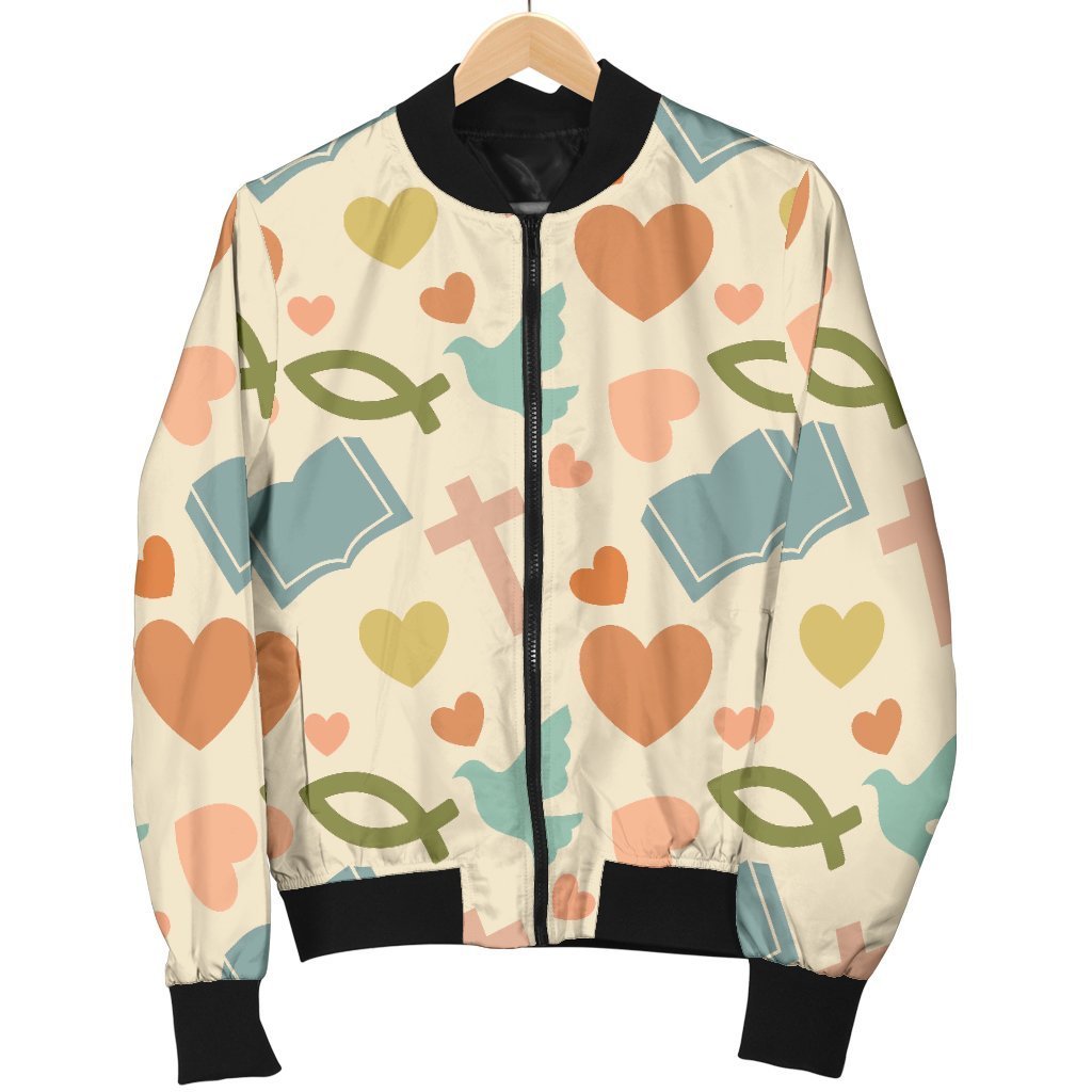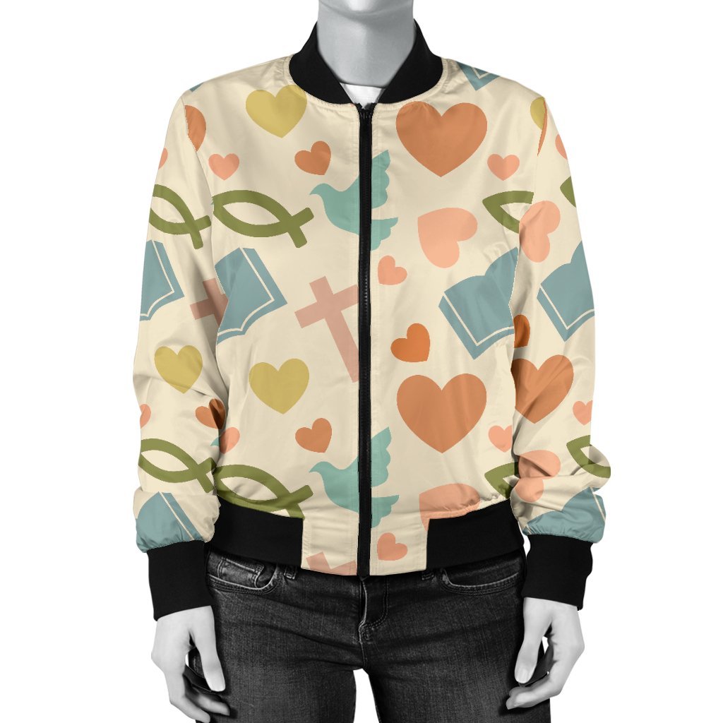 Christian Bible Pattern Print Women Casual Bomber Jacket