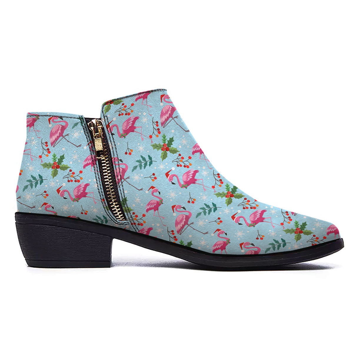 Christmas Flamingo Pink Print Pattern Ankle Boots