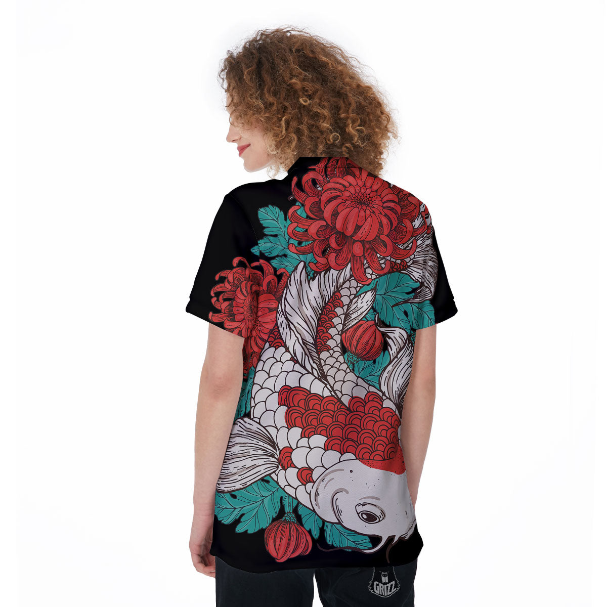 Chrysanthemums And Japanese Koi Print Women's Golf Shirts