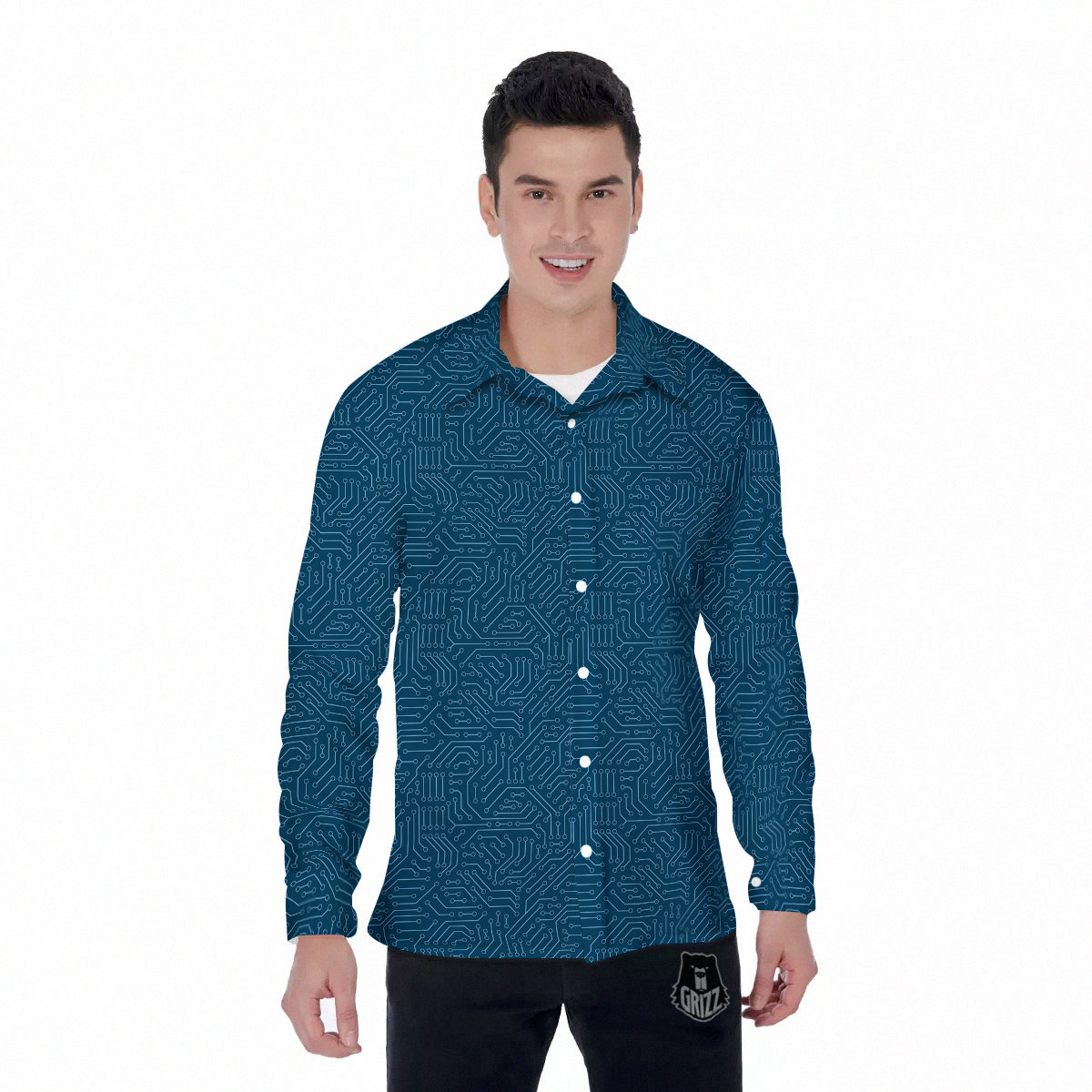 Circuit Blue Print Pattern Men's Long Sleeve Shirts