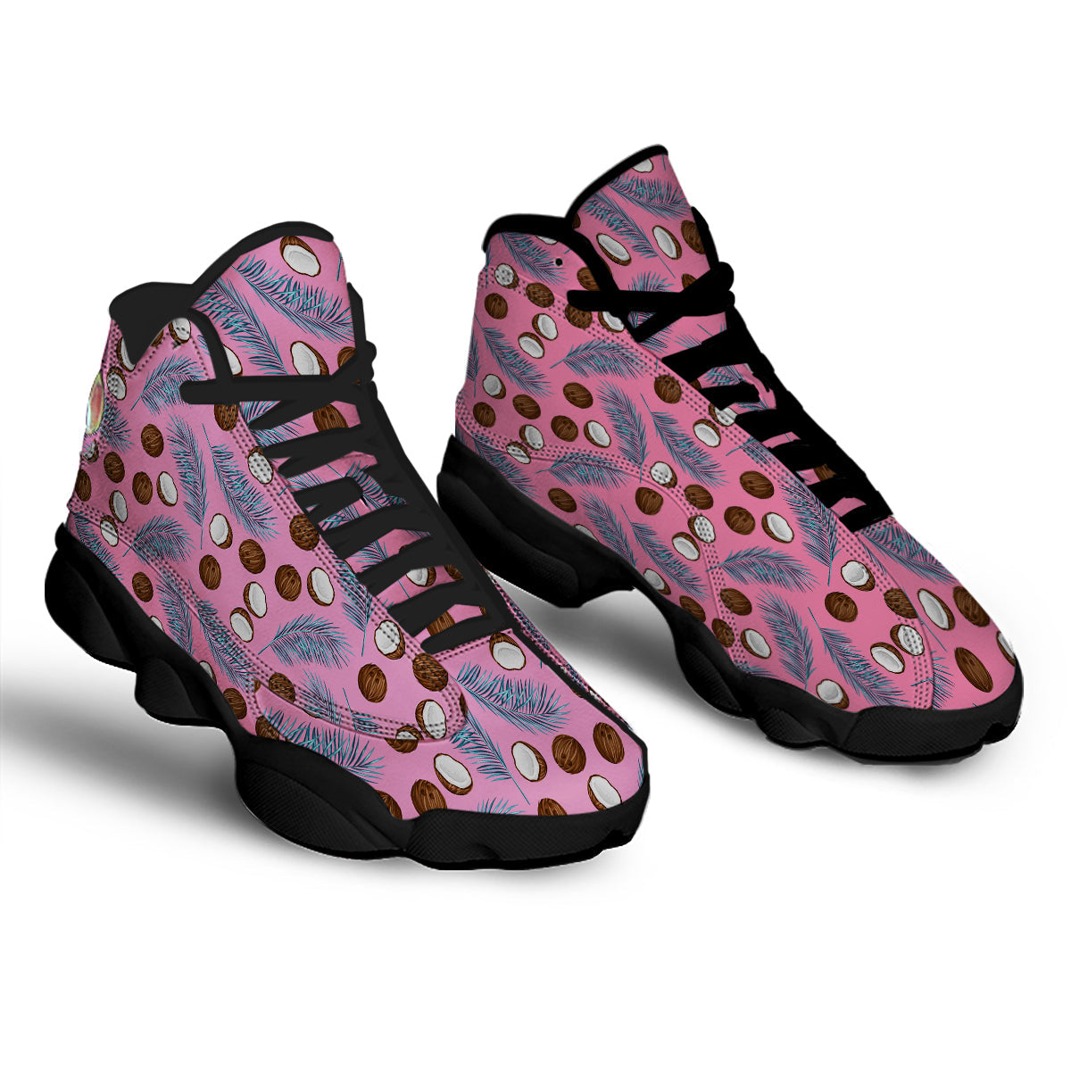 Coconut Pink And Palm Leaf Print Pattern Black Basketball Shoes