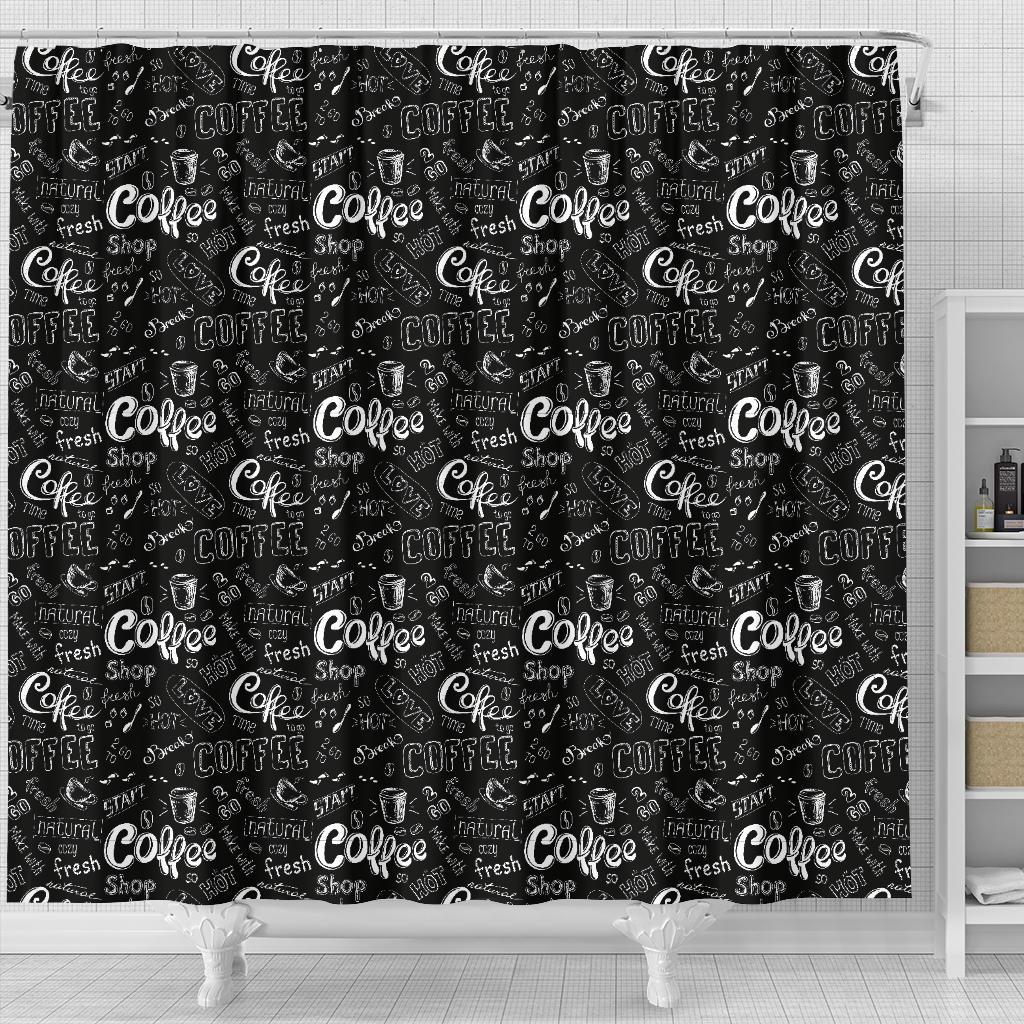 Coffee Black Pattern Print Bathroom Shower Curtain
