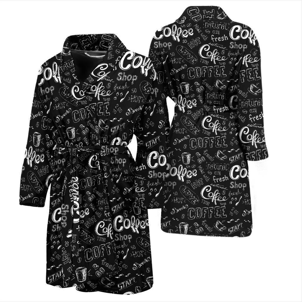 Coffee Black Pattern Print Men Long Robe