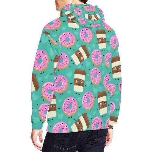 Coffee Donut Pattern Print Men Pullover Hoodie