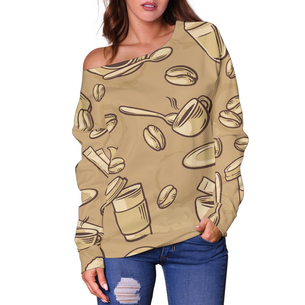 Looking for a unique shoulder sweater? Check out our Coffee Pattern Print Women Off Shoulder Sweatshirt at Grizzshopping. Our shoulder sweater are handcrafted to the highest quality standards that custom made for you