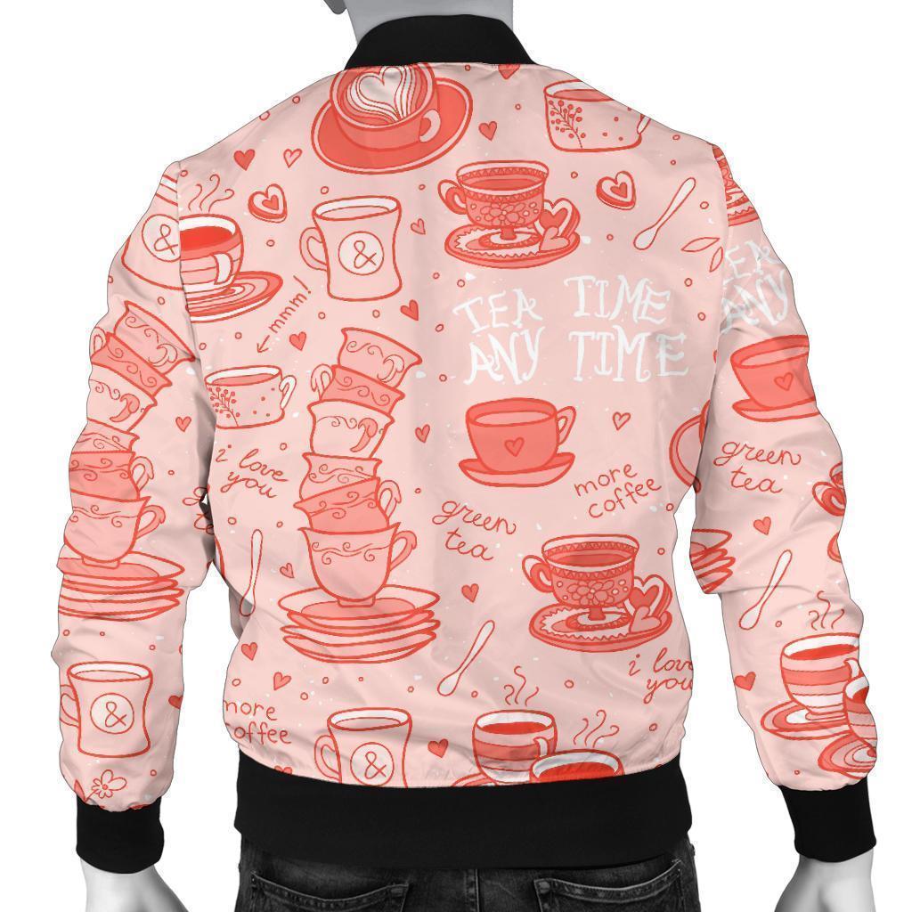 Coffee Pink Pattern Print Men's Bomber Jacket
