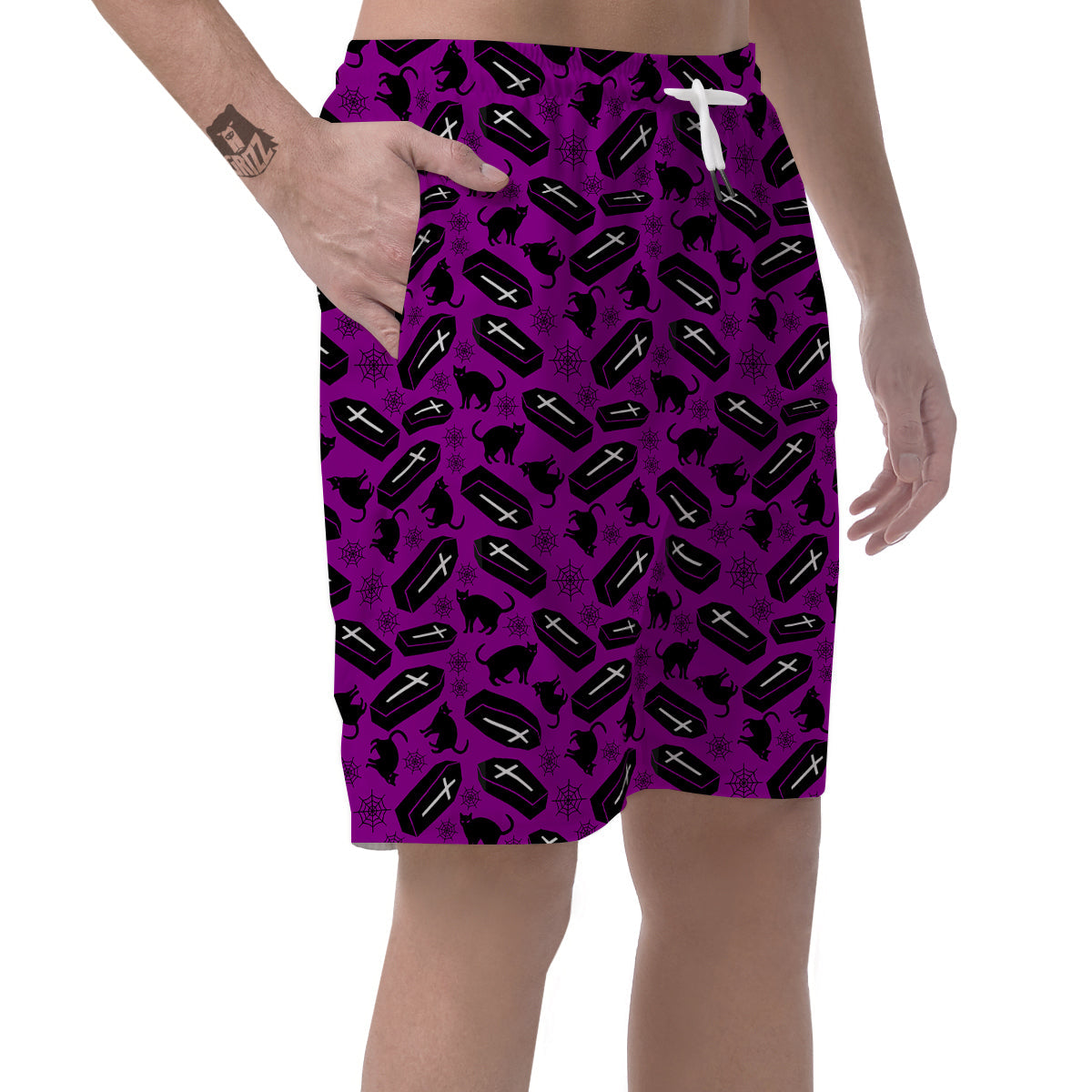 Coffin And Cat Purple Print Pattern Men's Shorts