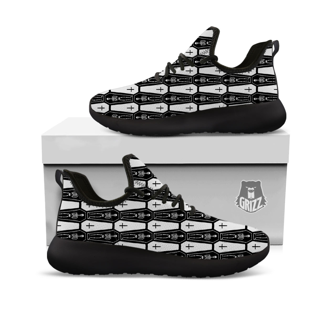 Coffin And Skeleton Print Pattern Black Athletic Shoes