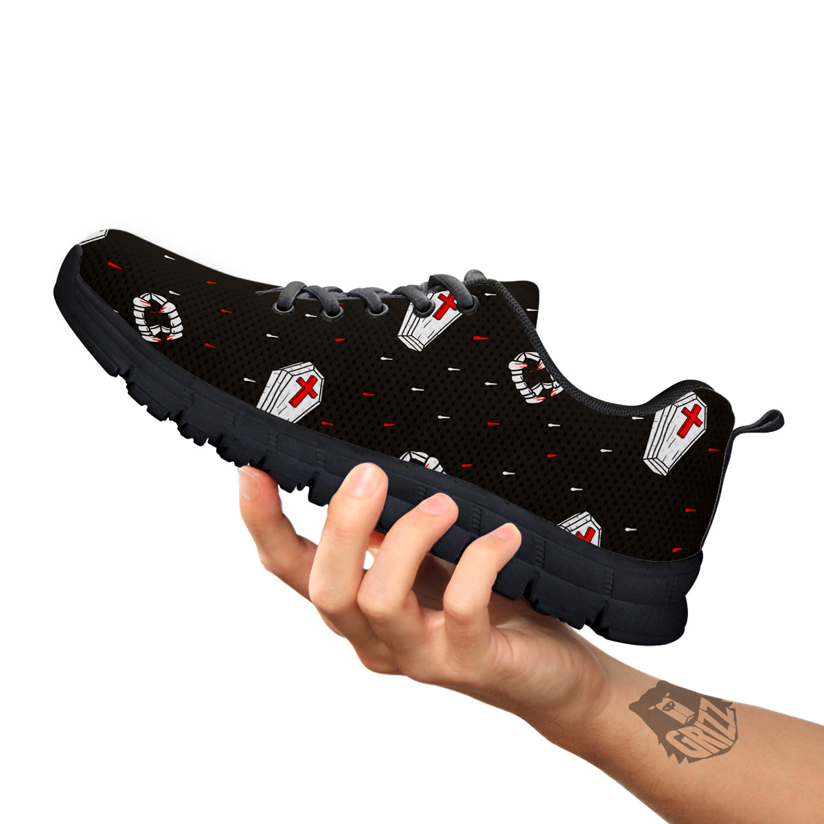 Looking for a unique sneaker? Check out our Coffin Vampire Print Pattern Black Sneakers at Grizzshopping. Our sneaker are handcrafted to the highest quality standards that custom made for you