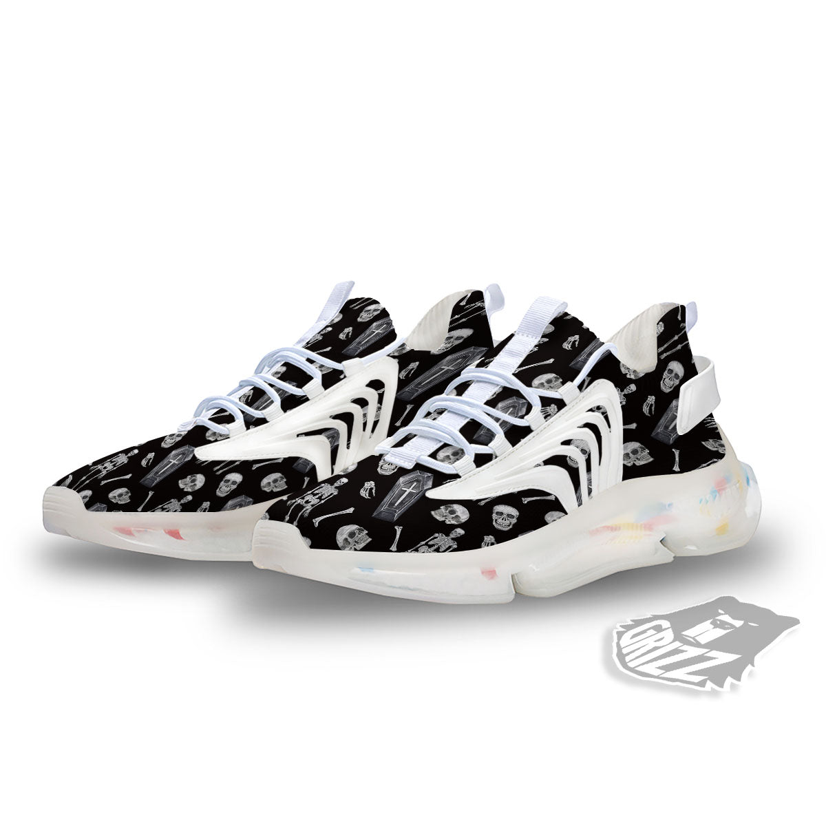 Coffin White And Black Print Pattern White Gym Shoes