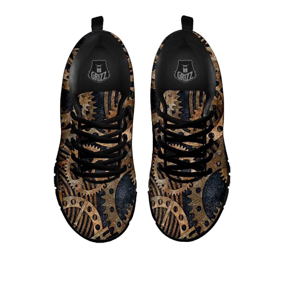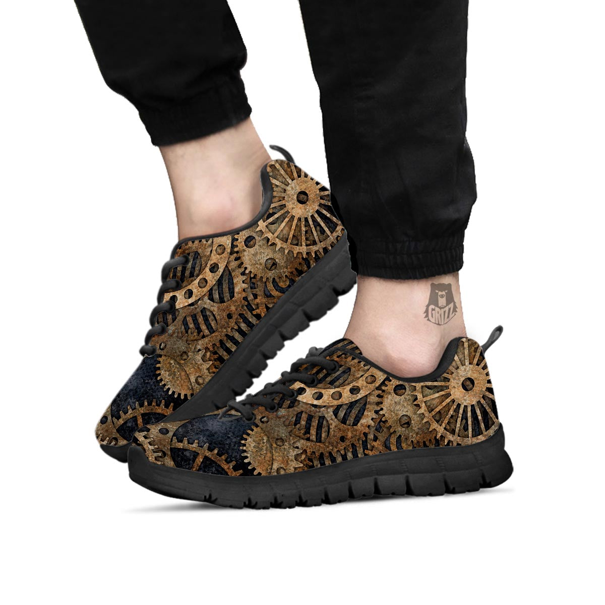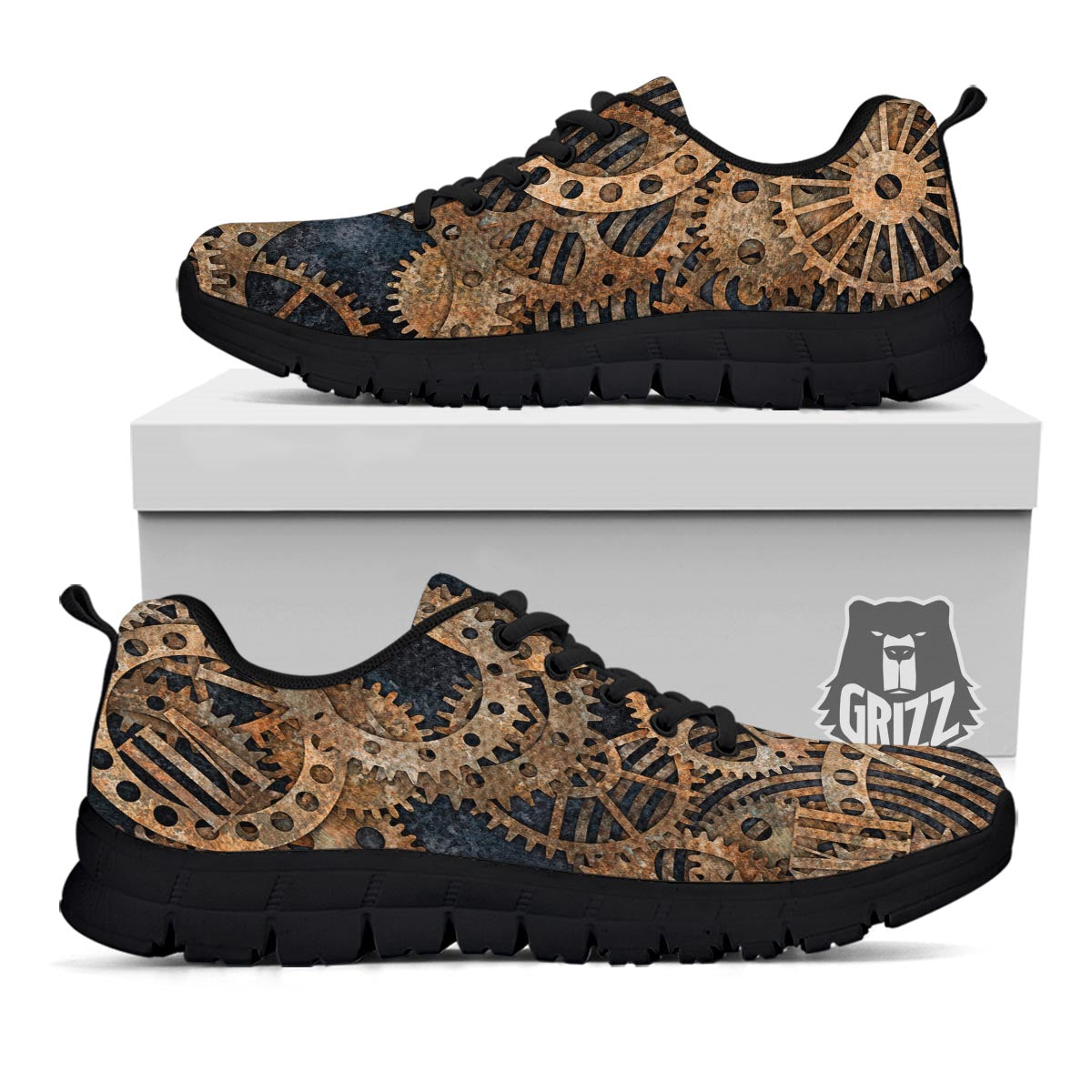 Cogs And Gears Steampunk Brass Print Black Sneaker