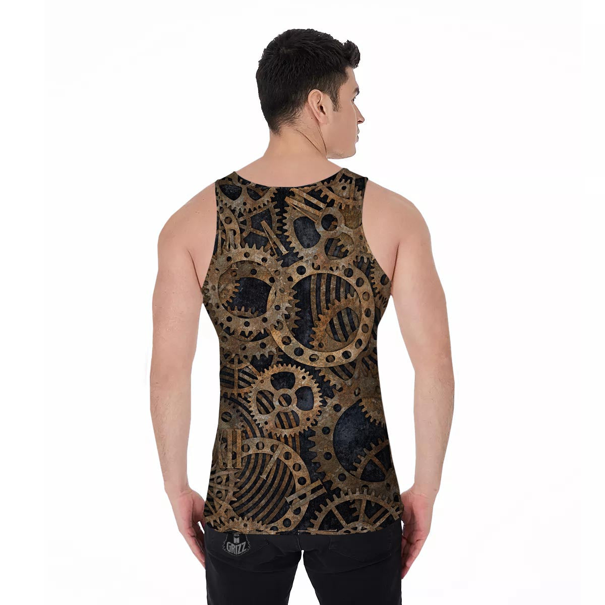 Cogs And Gears Steampunk Brass Print Men's Tank Top