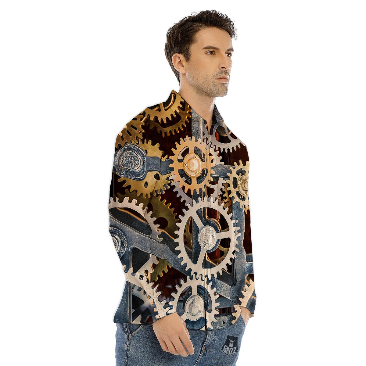 Cogs And Steampunk Gears Print Men's Dress Shirts