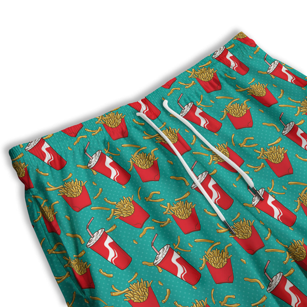 Cola And French Fries Print Pattern Men's Athletic Shorts