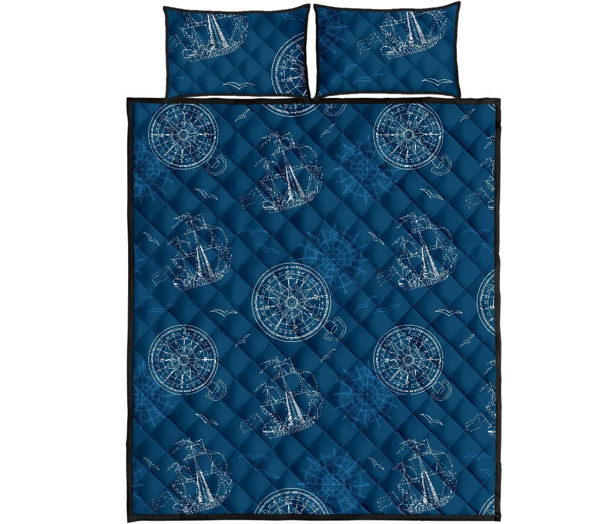 Compass Direction Pattern Print Bed Set Quilt
