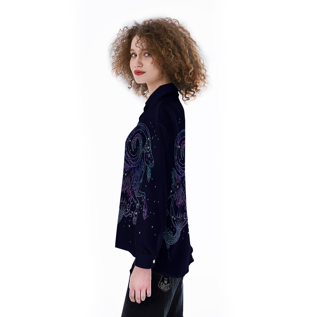 Constellation Capricorn Print Women's Long Sleeve Shirts