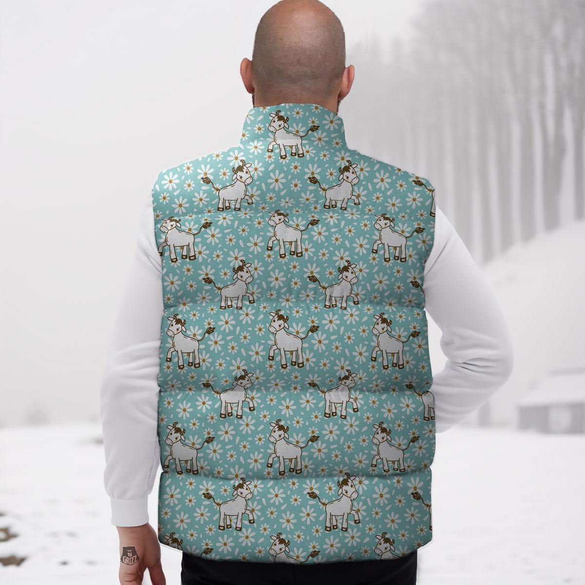 Cow And Cartoon Daisy Print Pattern Down Vest