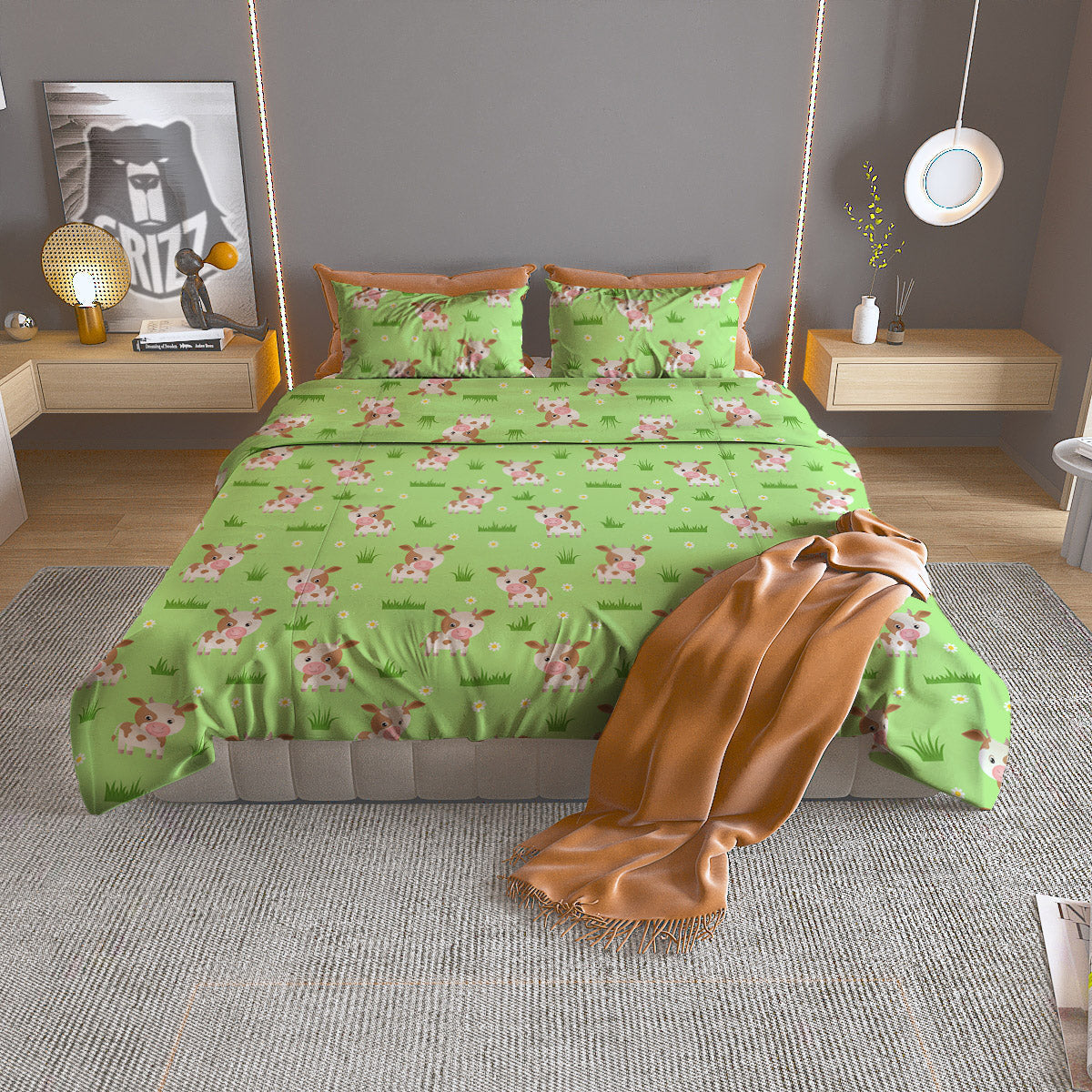 Cow And Green Grass Print Pattern Duvet Cover Bedding Set