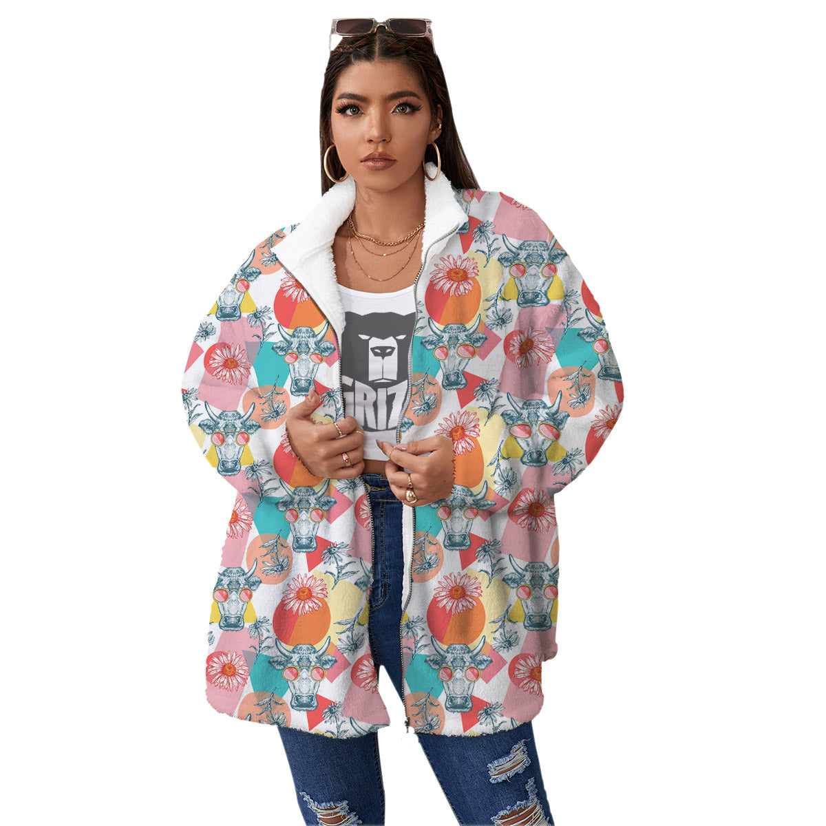 Cow Colorful Print Pattern Women's Sherpa Jacket