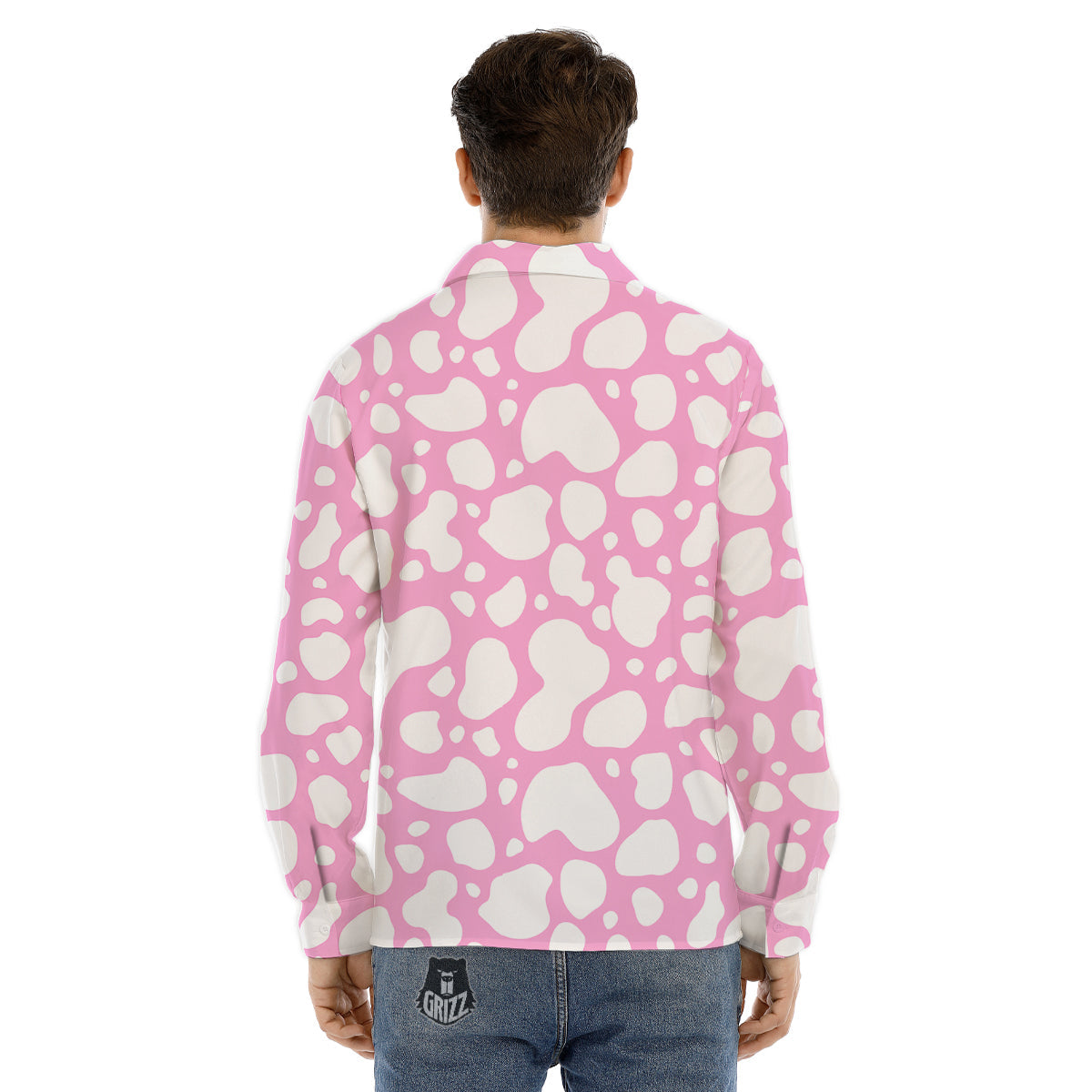 Cow Pink And White Print Pattern Men's Dress Shirts