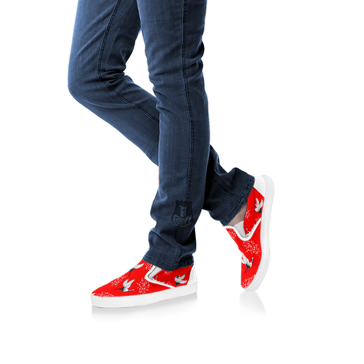 Crane Bird Japanese Print Pattern White Slip On Shoes