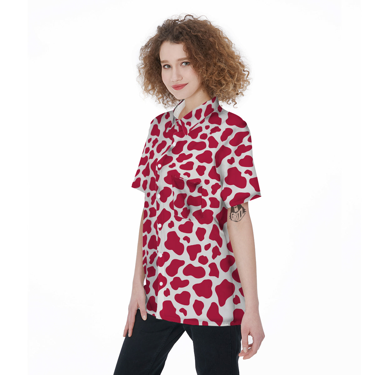 Crimson Cow Print Pattern Women's Short Sleeve Shirts
