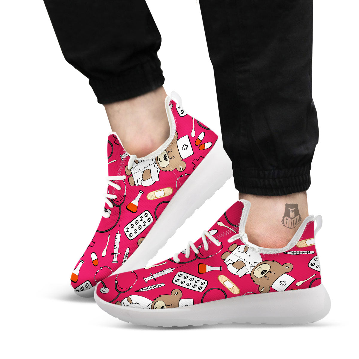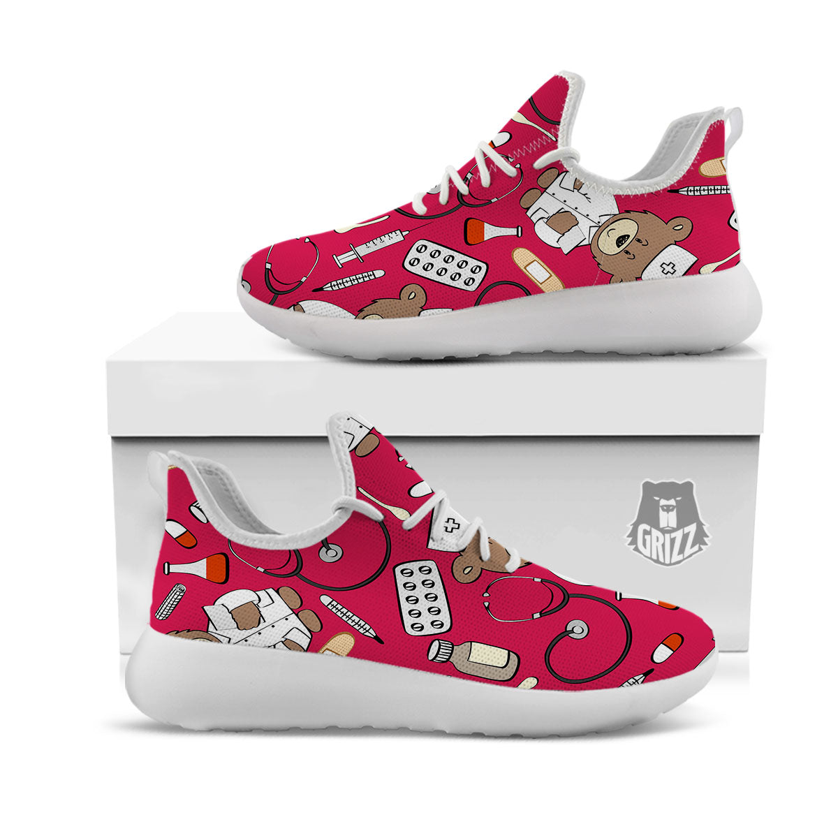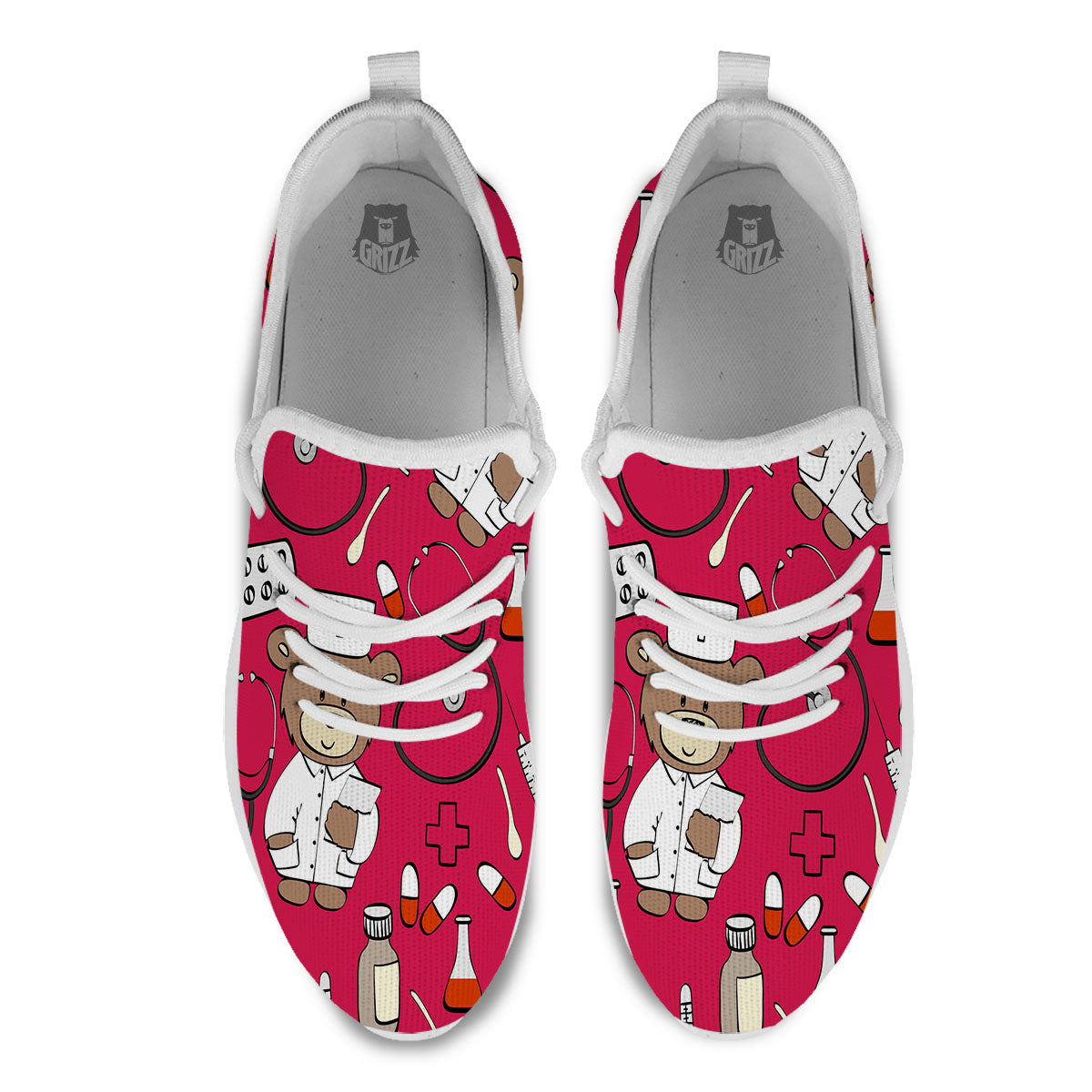 Crimson Teddy Bear Nurse White Athletic Shoes