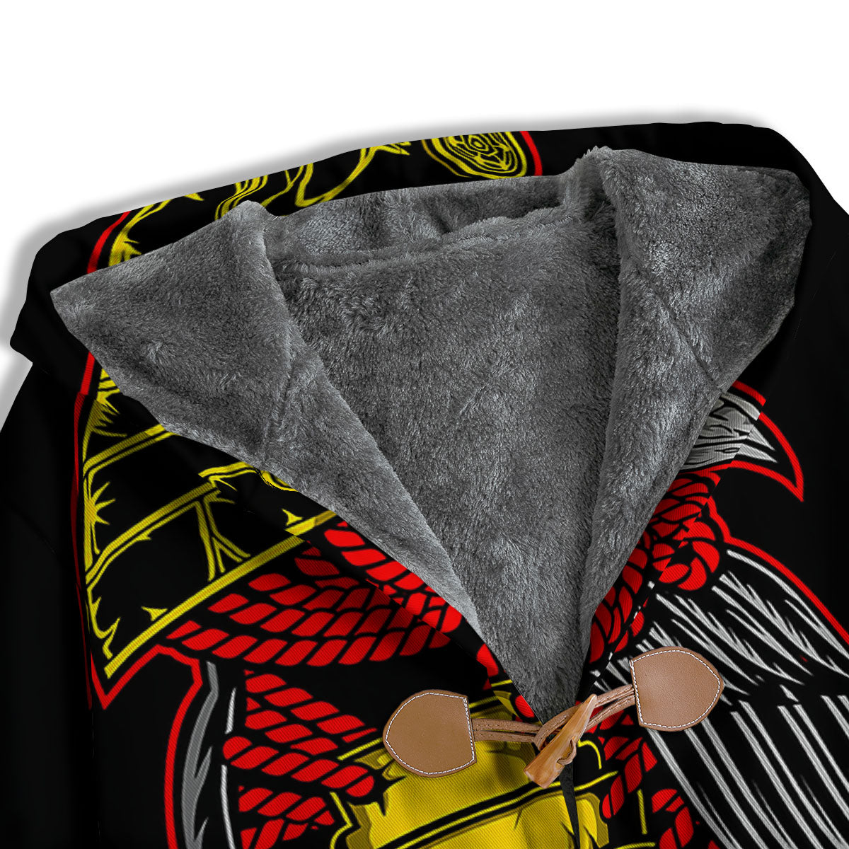 - Horn buckle, fleece, with hood