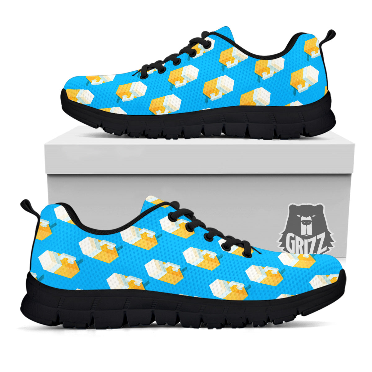 Cubic Beer Mugs On Blue Print Pattern Black Sneaker