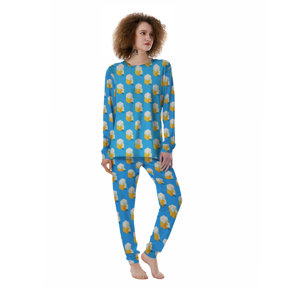 Cubic Beer Mugs On Blue Print Pattern Women's Pajamas