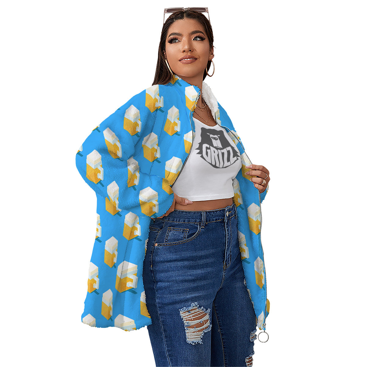 Cubic Beer Mugs On Blue Print Pattern Women's Sherpa Jacket
