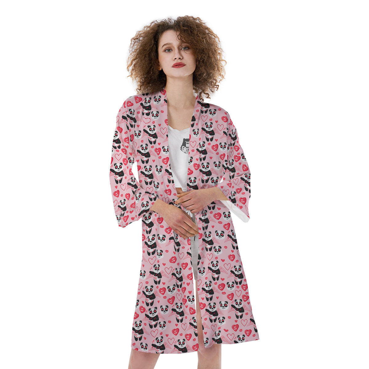 Cupid Valentine Cute Panda Print Pattern Kimono