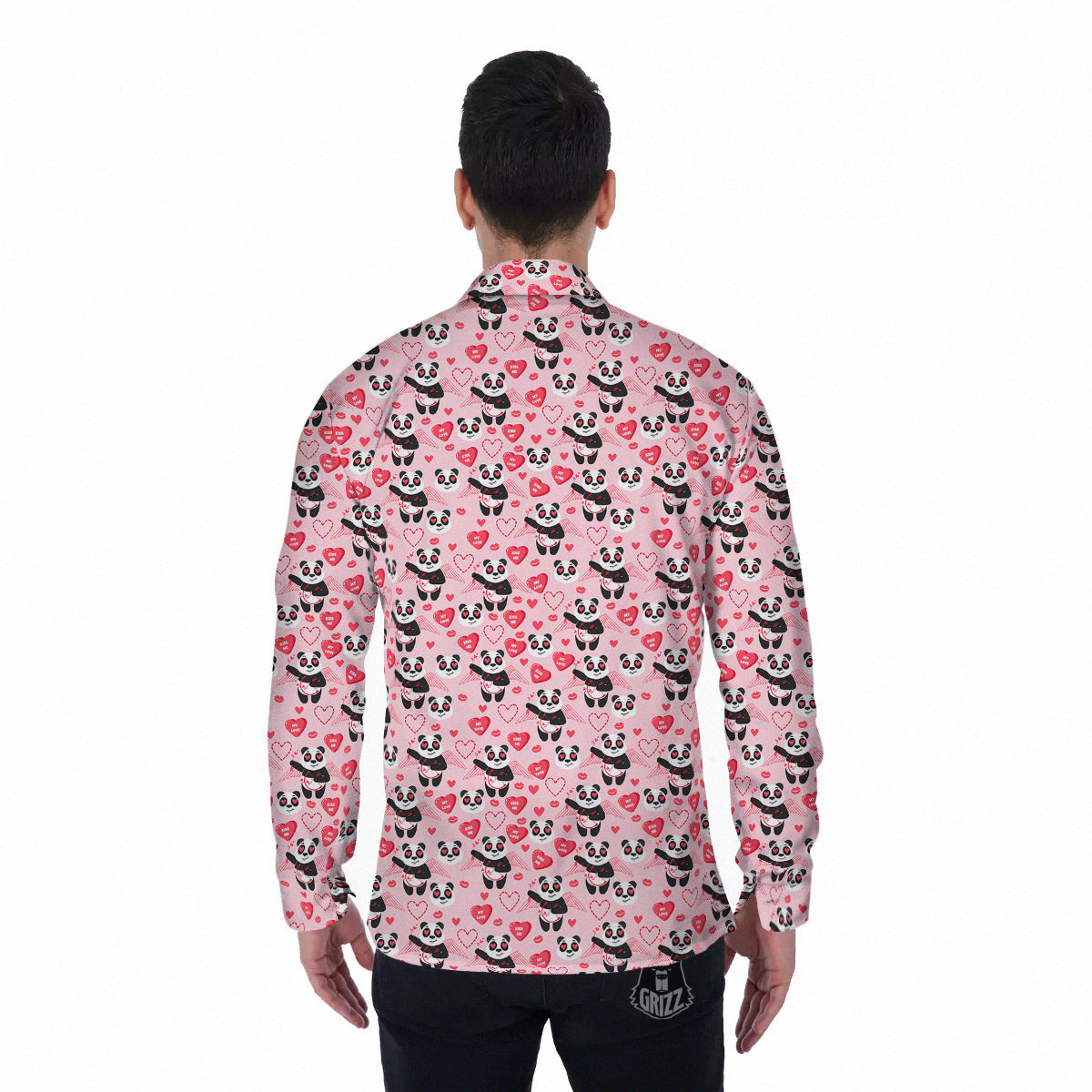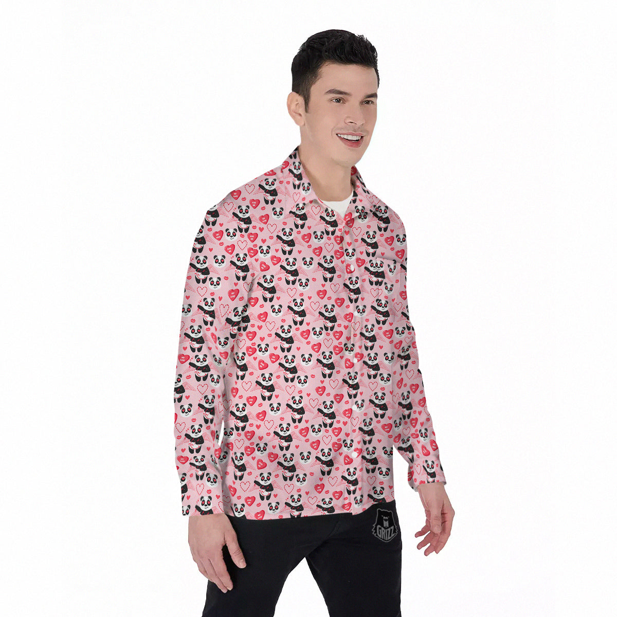 Cupid Valentine Cute Panda Print Pattern Men's Long Sleeve Shirts