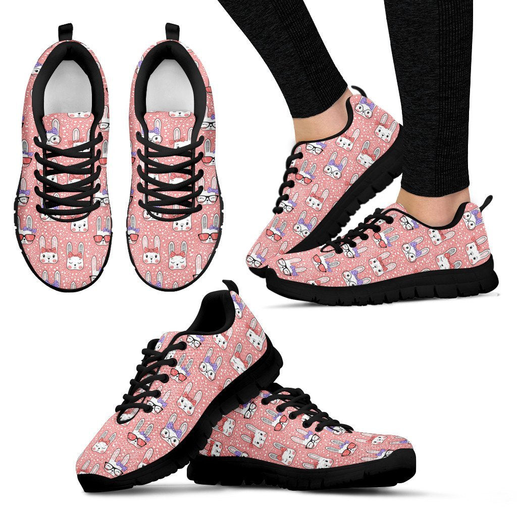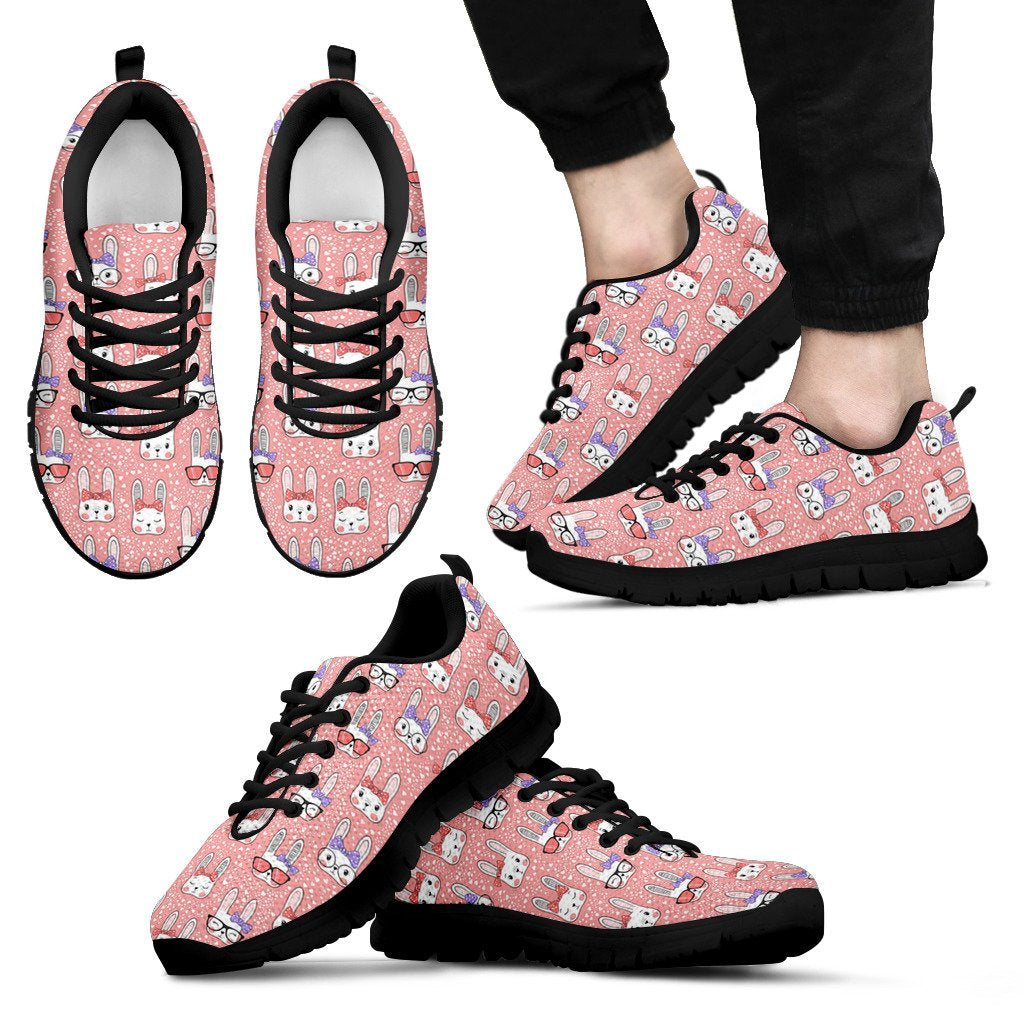 Cute Bunny Rabbit Pattern Print Black Sneaker Shoes For Men Women