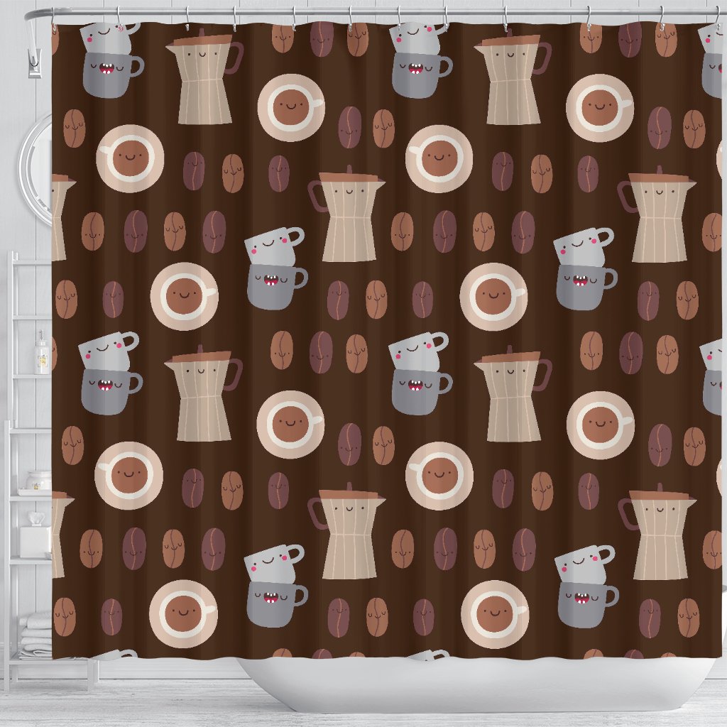 Cute Coffee Pattern Print Bathroom Shower Curtain