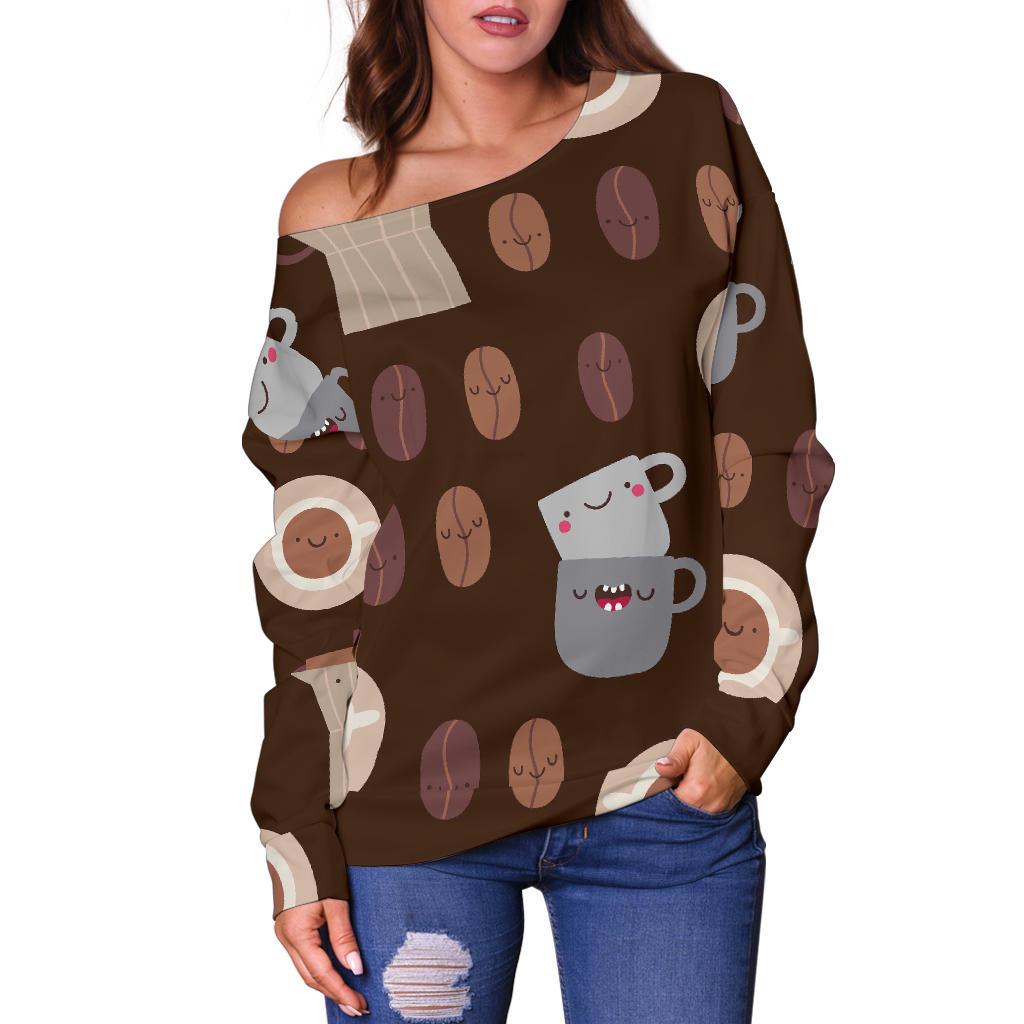 Looking for a unique shoulder sweater? Check out our Cute Coffee Pattern Print Women Off Shoulder Sweatshirt at Grizzshopping. Our shoulder sweater are handcrafted to the highest quality standards that custom made for you