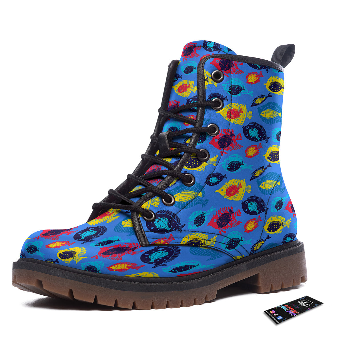 Cute Fish Colorful Blue Print Pattern Work Boots