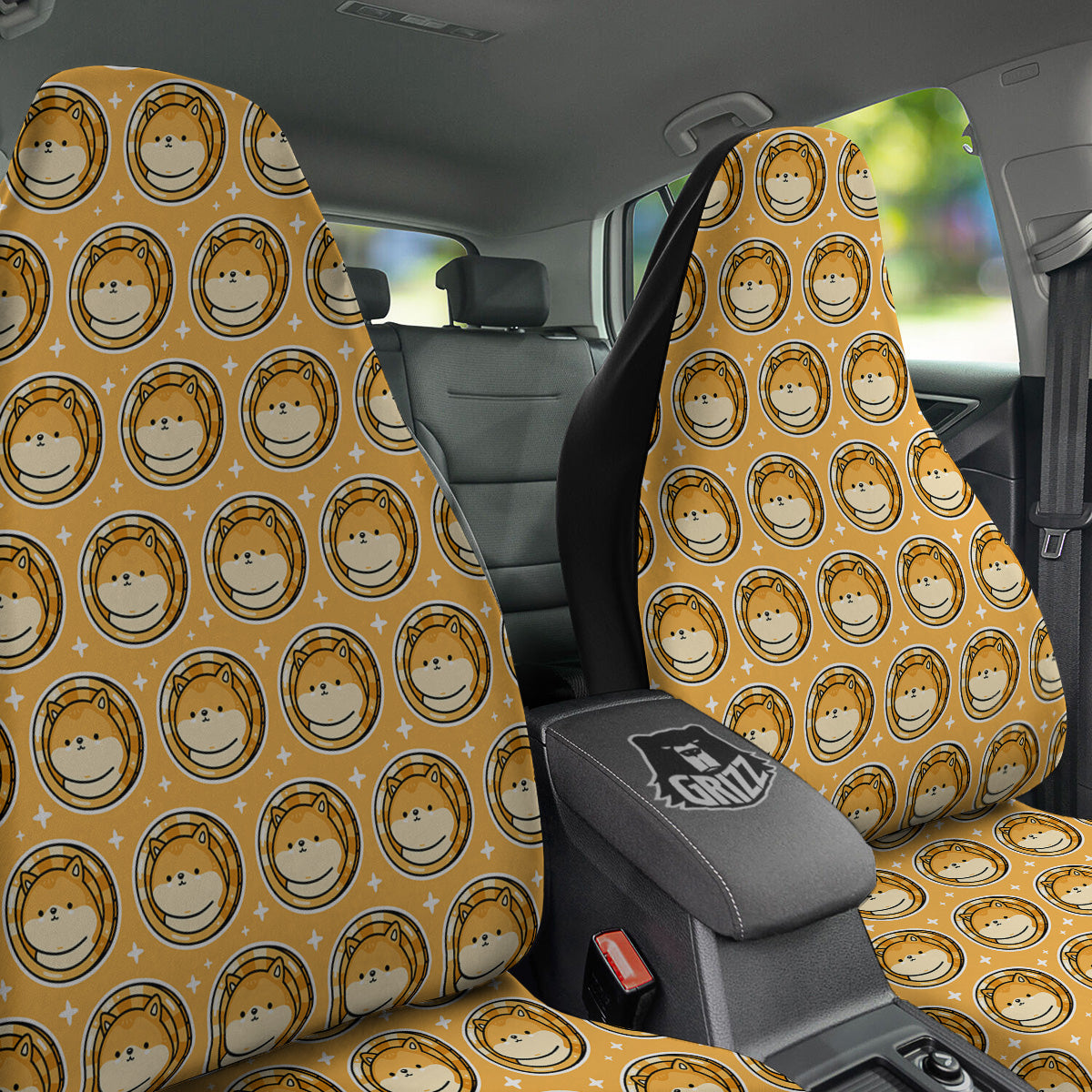 Cute Funny Crypto Dogecoin Print Pattern Car Seat Covers