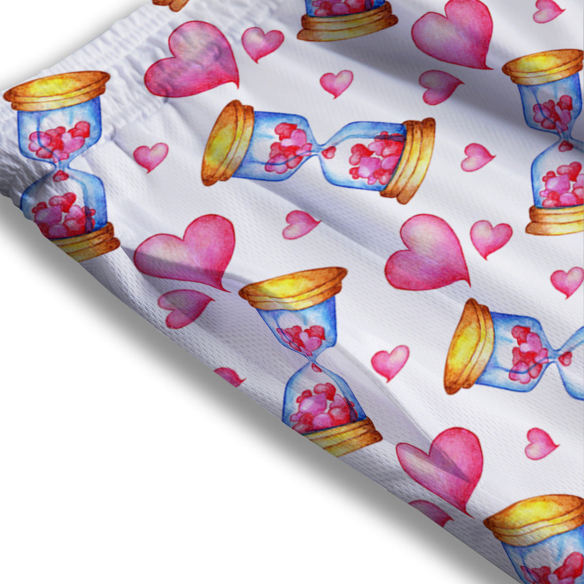 Cute Hourglass Hearts Print Pattern Mesh Shorts