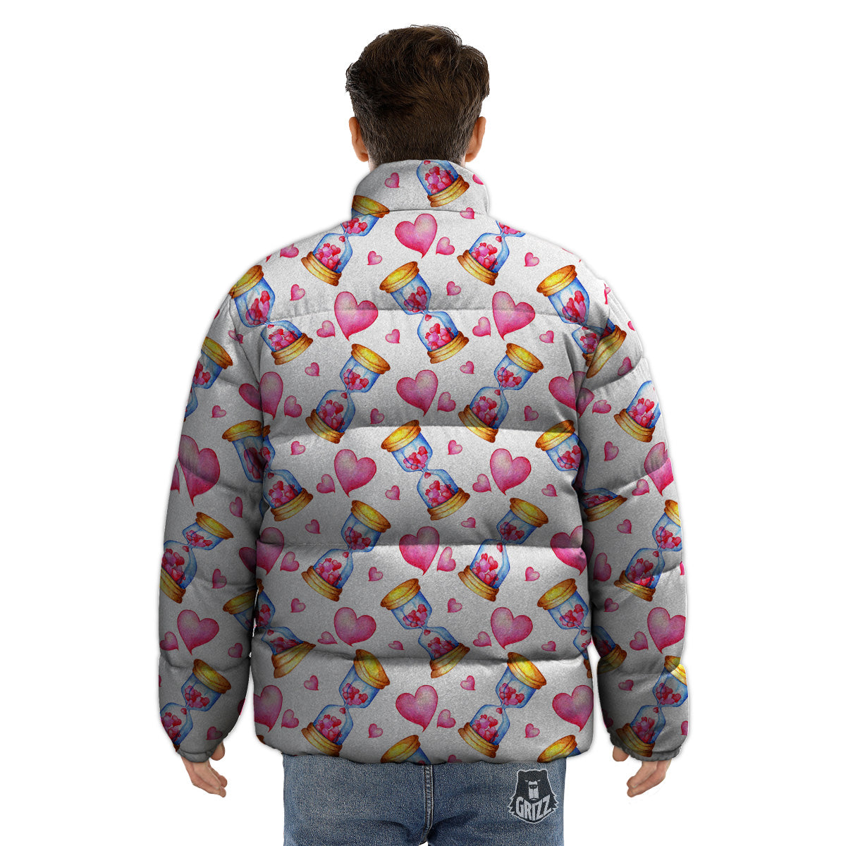 Cute Hourglass Hearts Print Pattern Puffer Jacket