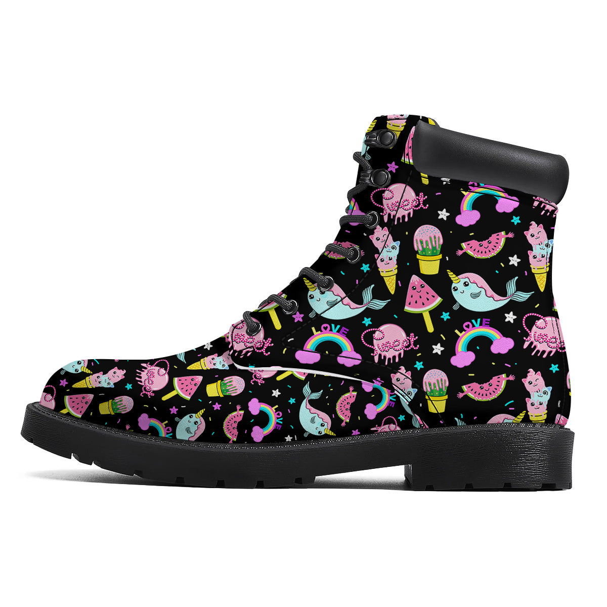 Cute Pink Ice Cream Narwhal Rainbow Print Pattern Boots