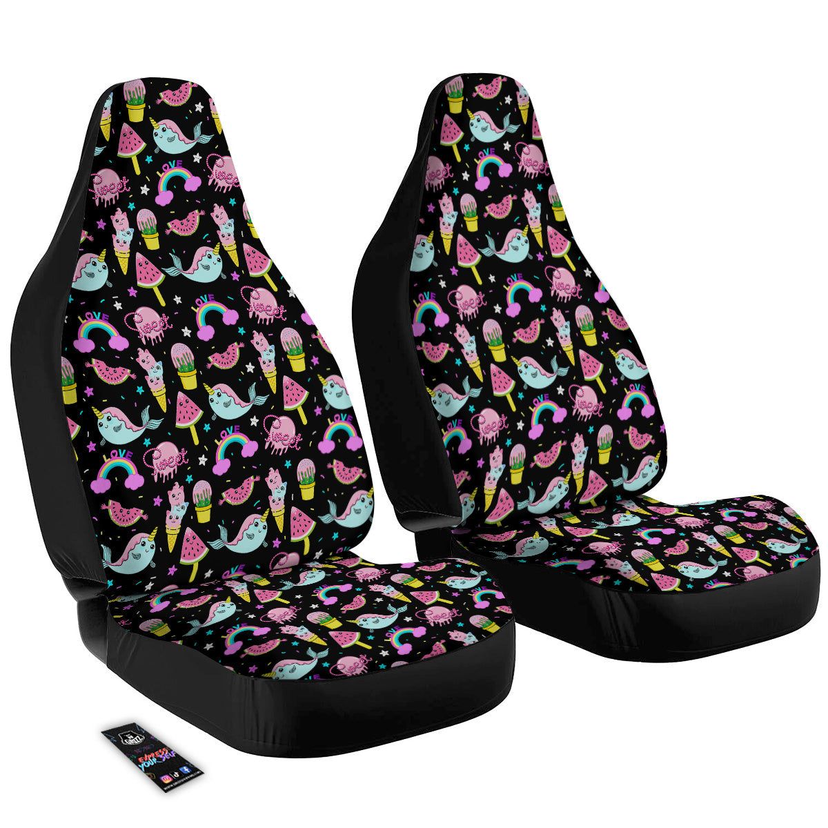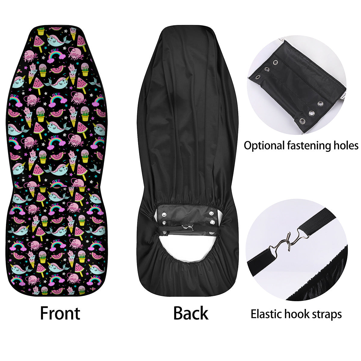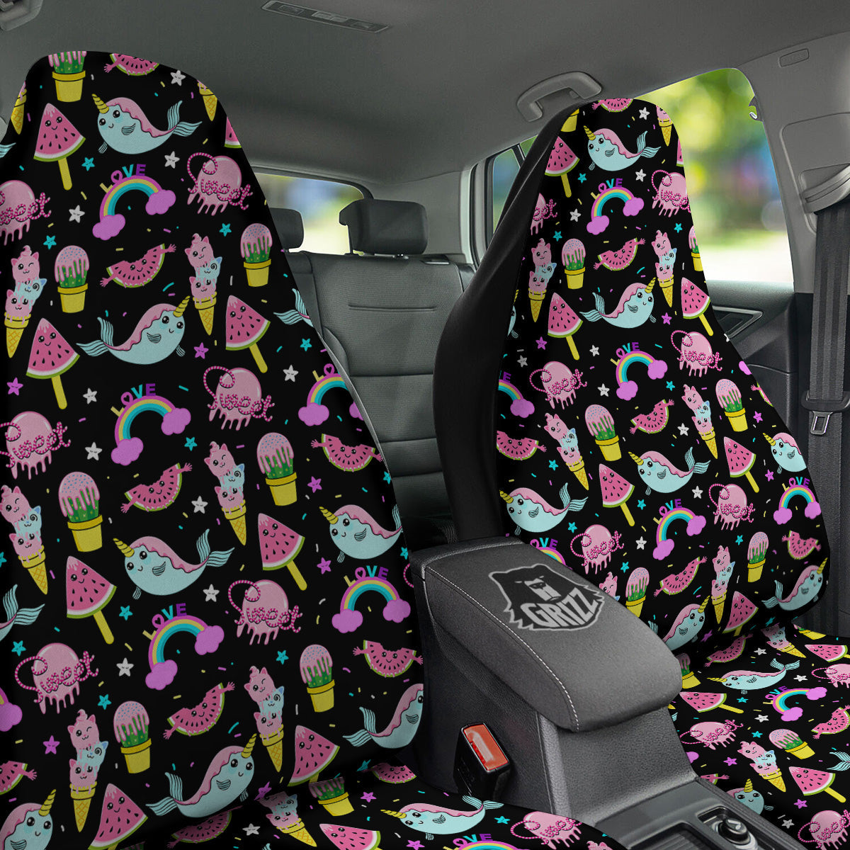 Cute Pink Ice Cream Narwhal Rainbow Print Pattern Car Seat Covers