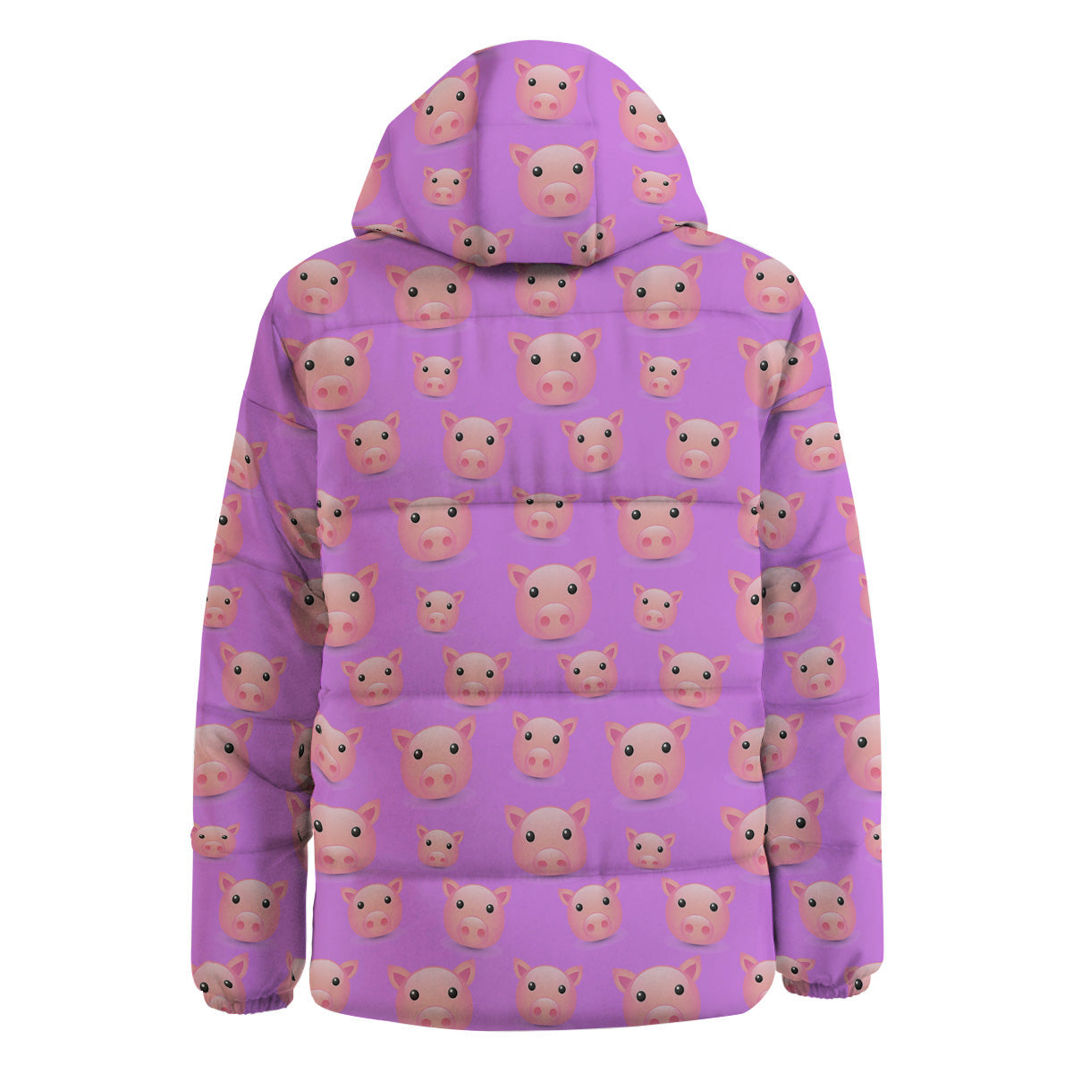 Cute Pink Pig Face Emoji Print Pattern Down Jacket