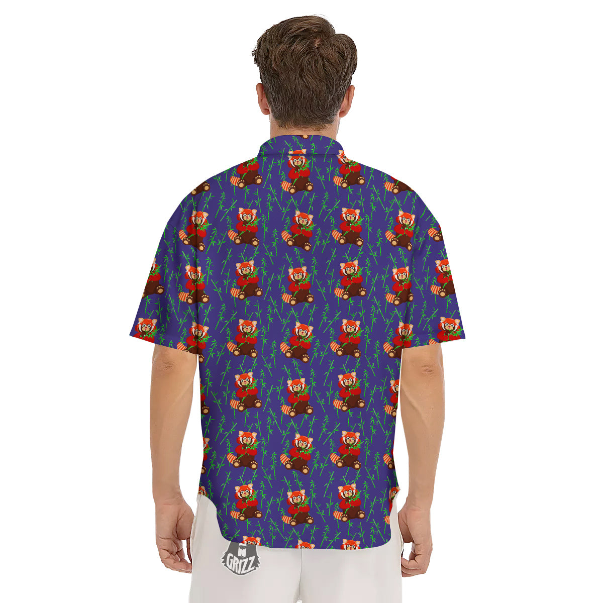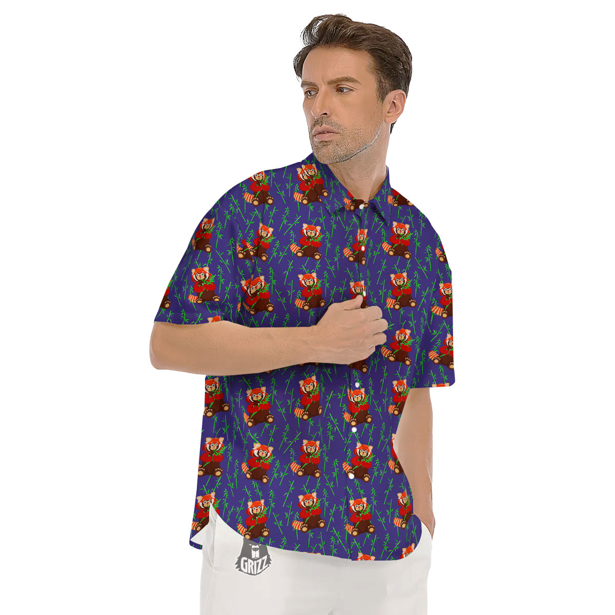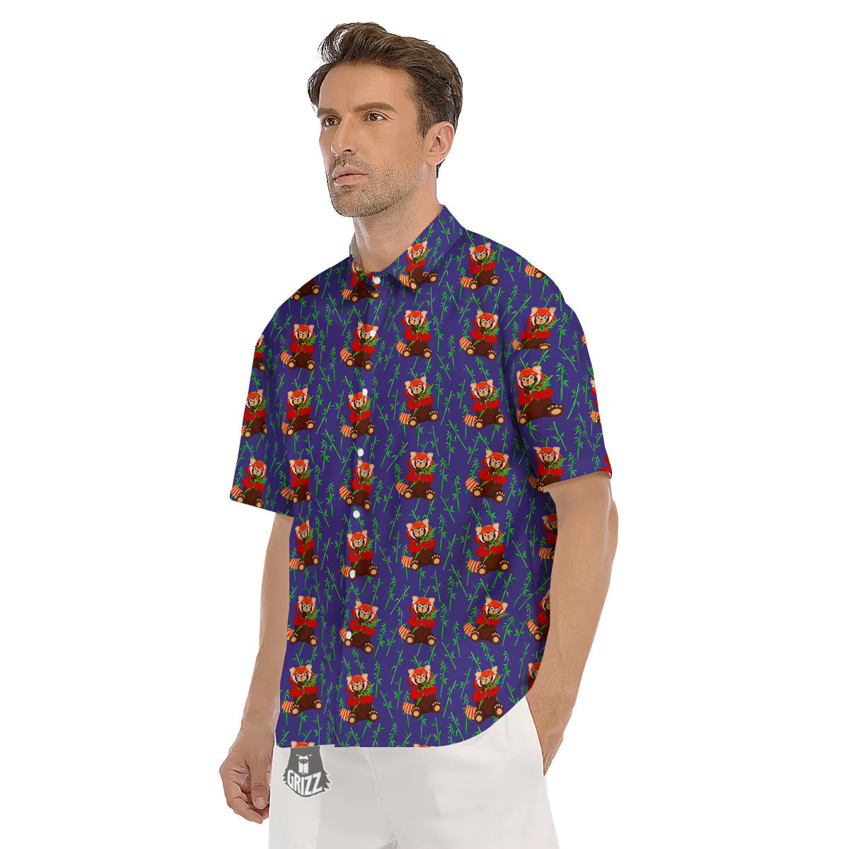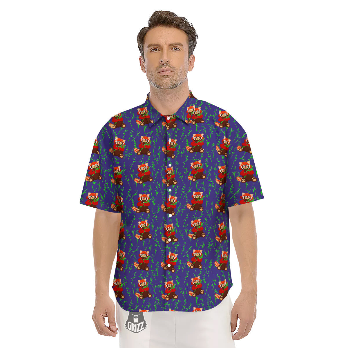 Cute Red Raccoon And Bamboo Print Pattern Men's Short Sleeve Shirts