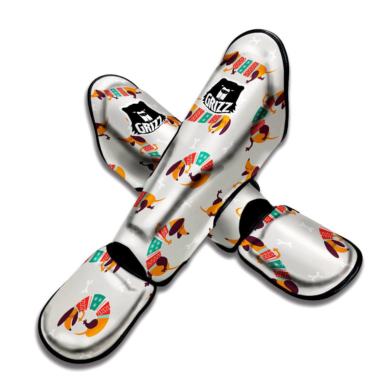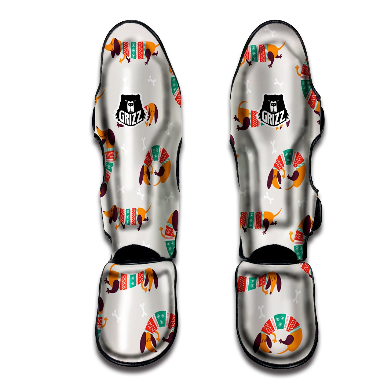 Dachshund Xmas Print Pattern Muay Thai Shin Guards