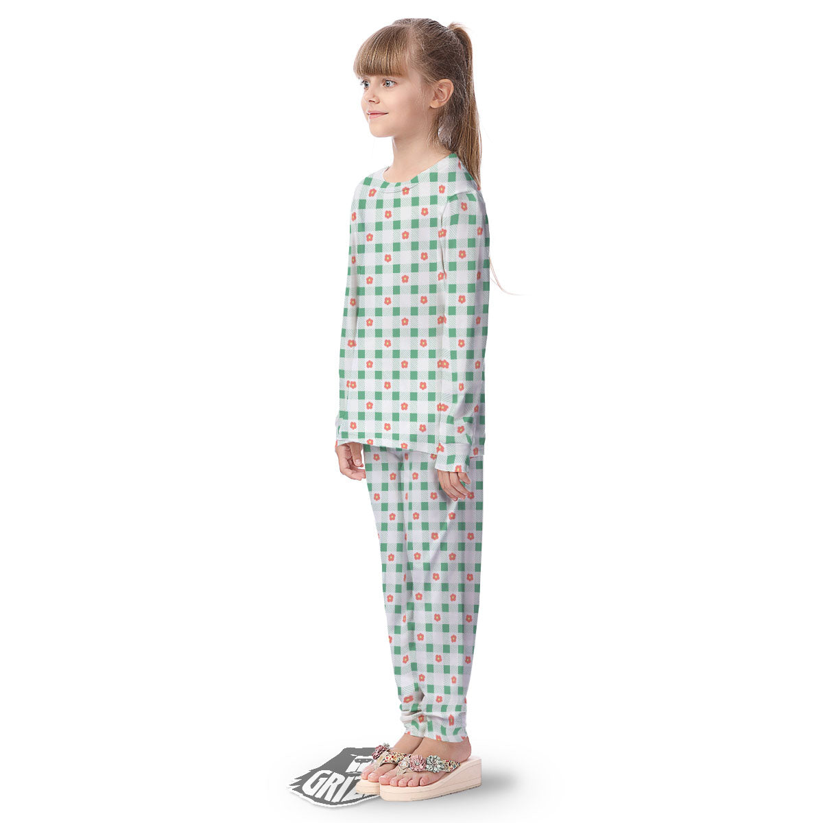 Daisy Tartan Green Print Pattern Kid's Pajamas