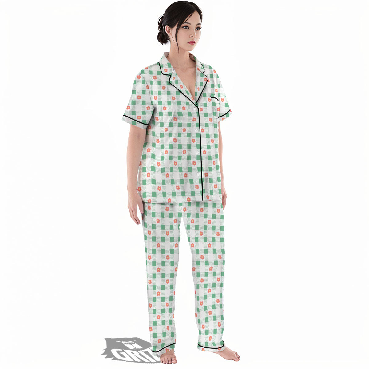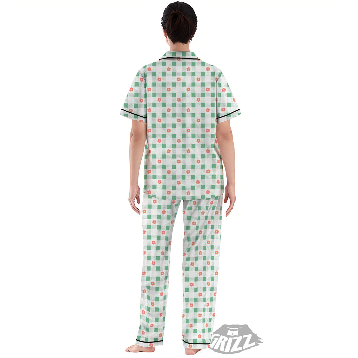 Daisy Tartan Green Print Pattern Women's Pajamas Set
